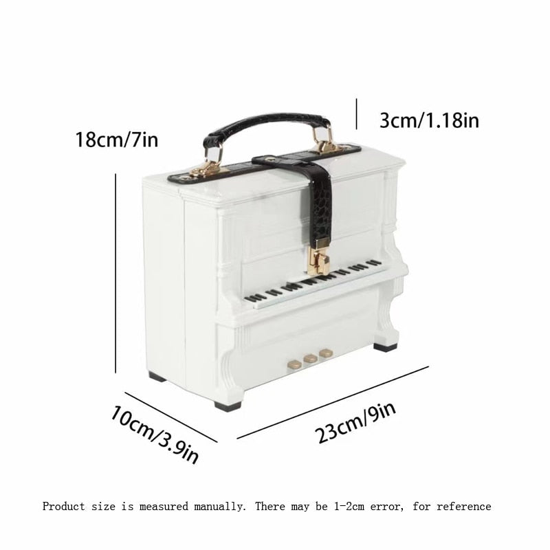 Whether you're an inspiring pianist, or just a lover of all things music, this unique bag is perfect for you. Shaped like a piano, the bag is spacious and high quality and looks very realistic. The bag fastens securely with a hasp closure and is made from faux leather. Available in 6 colours. Gift to your musical mate as a present they will never forget, or treat yourself to this distinctive bag as a "key" to a fun festival!