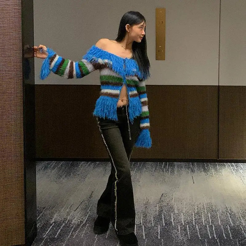 Festigal is always on the look out for unusual designs to help our Festival goers to stand out in the crowd; something which combines fashion with practicality. With this in mind we couldn't wait to show you this Colourful Slash-Neck Cardigan!