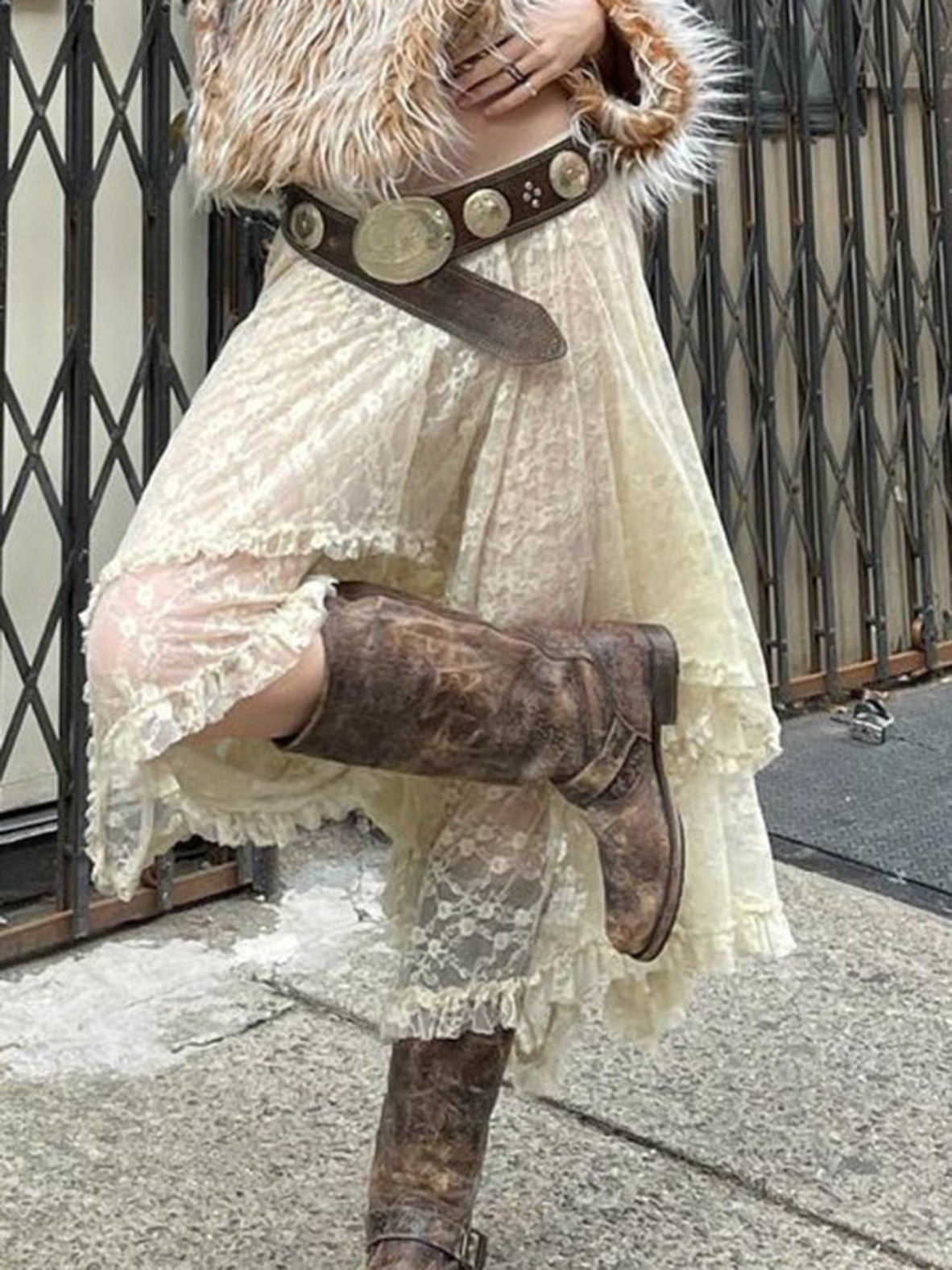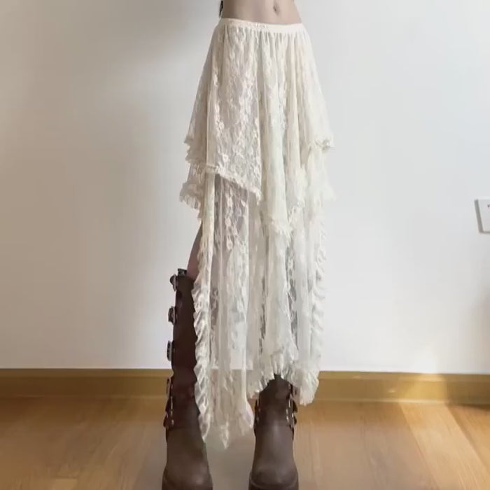 Whether you're heading to a music festival or simply want to embrace the bohemian fashion trend, the Irregular White Lace Midi Skirt is a must-have piece that will effortlessly elevate your summer style.