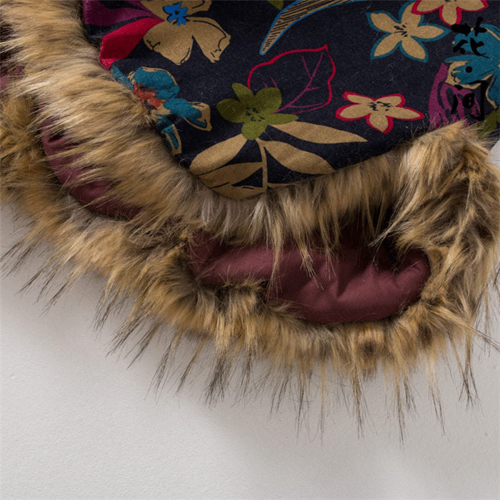 Material: Cotton outer layer; faux fur trim, polyester lining