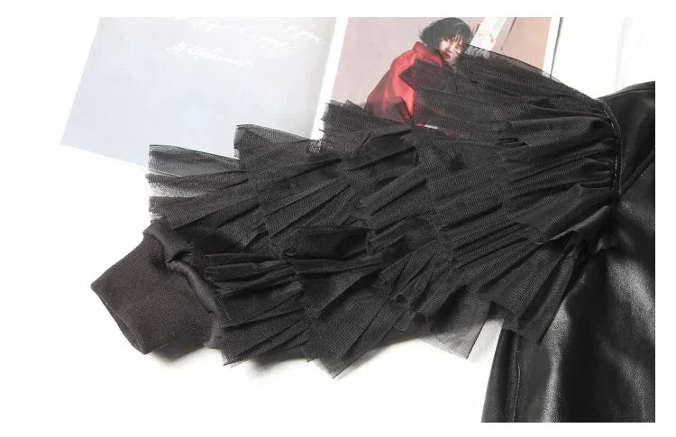 Faux Leather Ruffle Sleeve Jacket