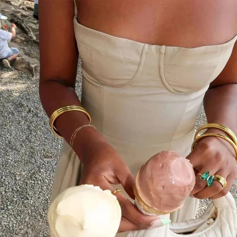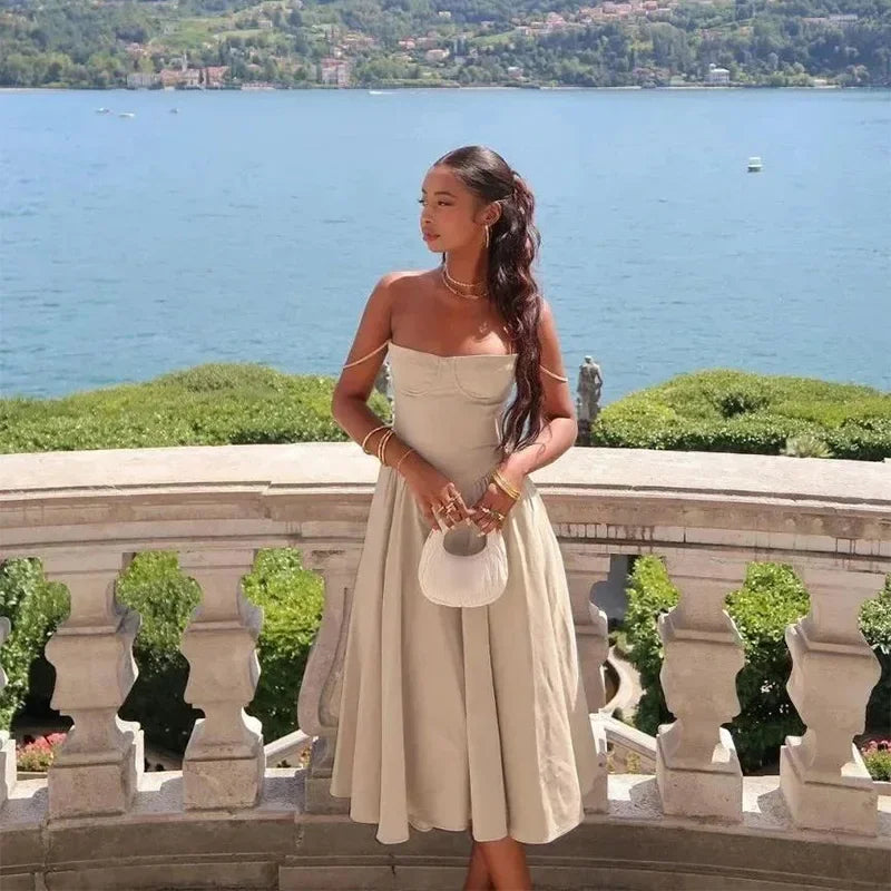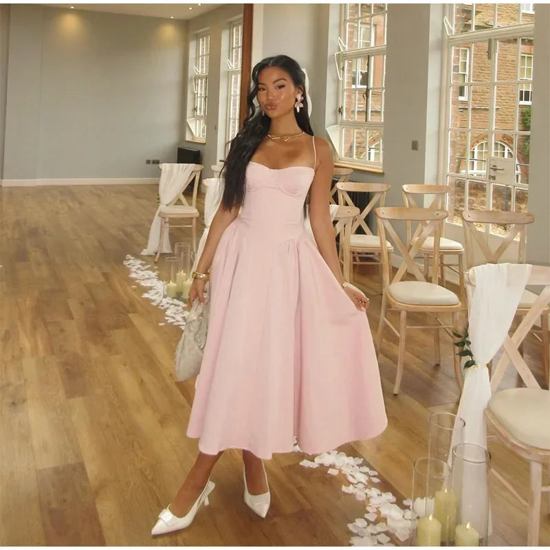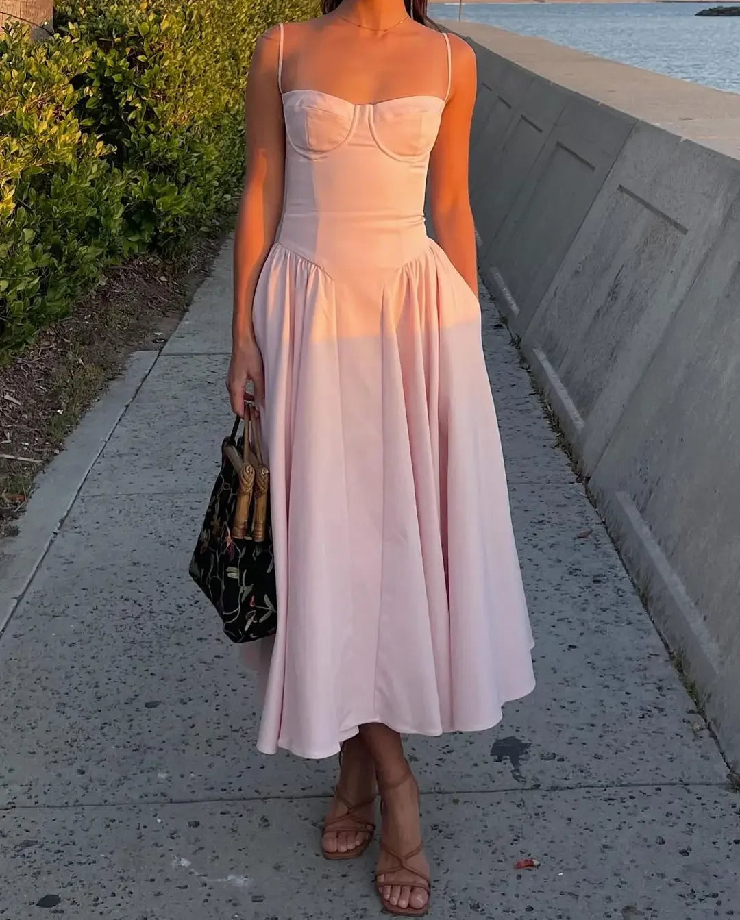 The Bustier Pleated Midi Dress is your go-to summer festival outfit! Available in a range of colours, this dress is both flattering and feminine. It features a fitted bustier-style top with spaghetti straps, and a flared, pleated skater design at the bottom for that perfect twirl. Made from lightweight polyester, it’s sleeveless and ankle-length, keeping you cool and stylish. With a zipper closure at the back, it’s easy to slip into and ready for any sunny adventure!