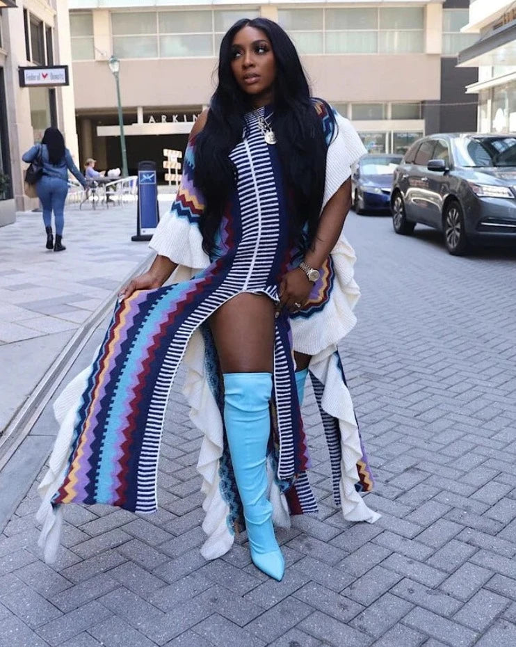 Go bold, go colourful and go Festival in big style with our Knitted Ribbed Ruffle Dress.