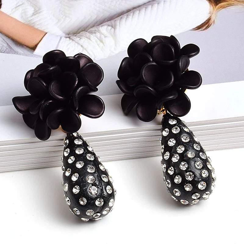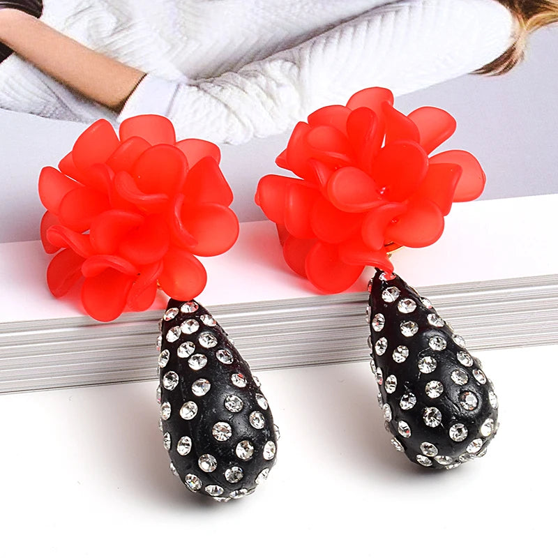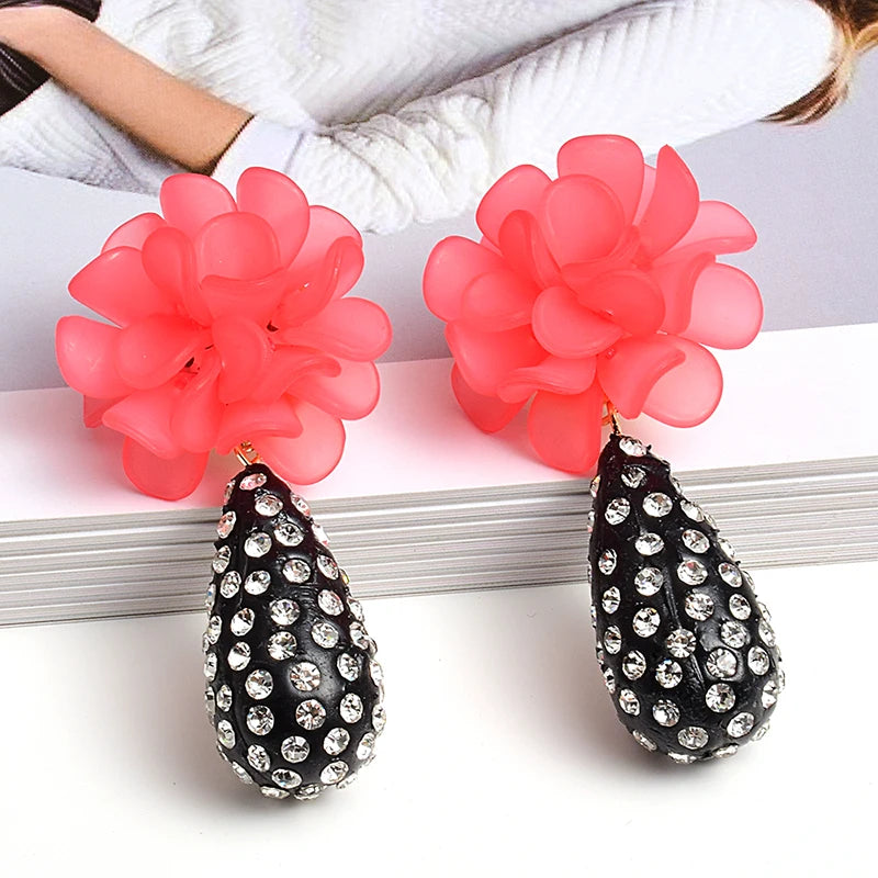 Turn heads at festivals with our vibrant Statement Flower & Rhinestone Waterdrop Earrings! Picture a lively 3D flower as the stud, bursting with colour, paired with a dangling black rhinestone studded waterdrop pendant below. It's a boho dream come true! 🌸✨