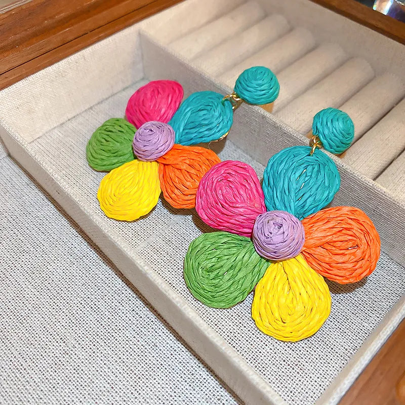 Elevate your style with our Woven Rainbow Sunflower Earrings! 🌈🌻 These vibrant, sunflower-shaped accessories are the epitome of boho chic. Woven with colourful grass rattan and secured with zinc hypoallergenic, alloy earring hooks, they bring a touch of nature to your ears. Perfect for the free-spirited hippy in you, these earrings are a must-have for any festival.