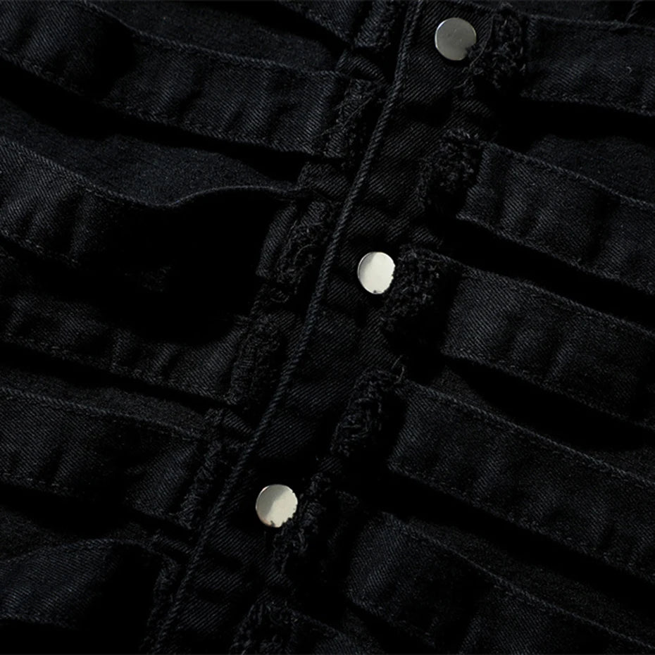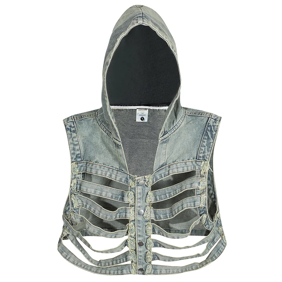Available in medium or large, this sleeveless wonder features a button-up front for easy, on-the-go style. The unique cut-out rib cage design adds an extra layer of intrigue, making you stand out in any crowd. Crafted from comfortable cotton, it's the perfect blend of fashion and comfort.