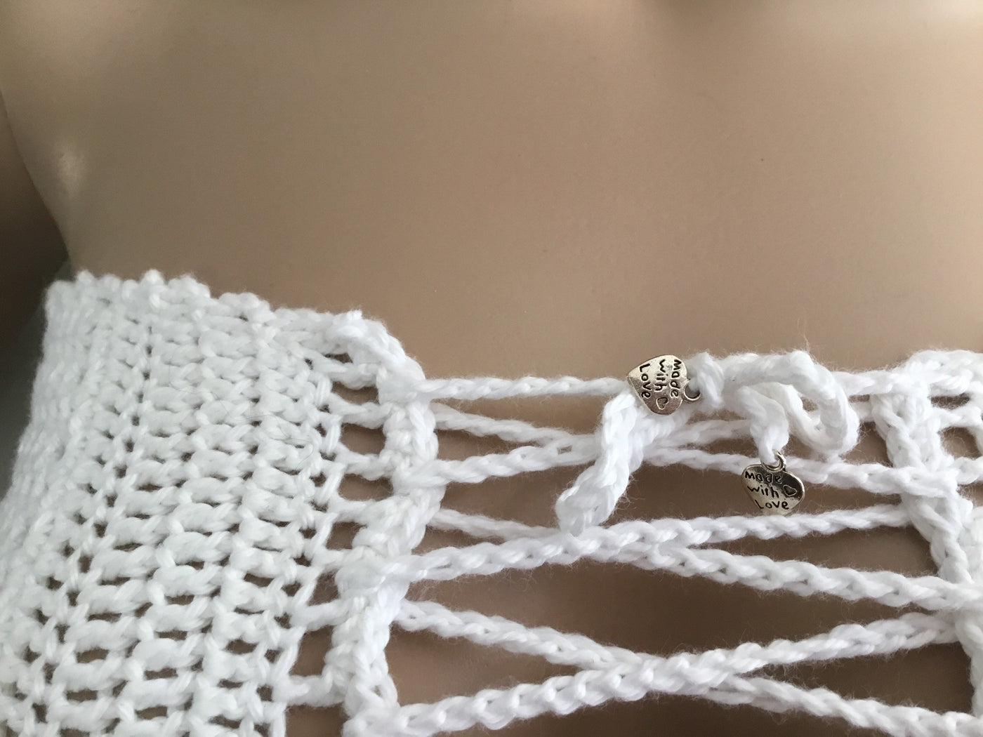 Handmade Crochet Basque style Tube Top, made by Festigal owner - wanting to make individual quality items for people with zest for life, music and adventure.