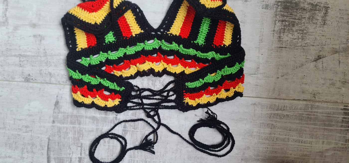 Fabulous, handmade and hand designed in UK by Festigal's very own Sue.  Superb quality, Jamaica 🇯🇲 Rasta Festival inspired Brallette.