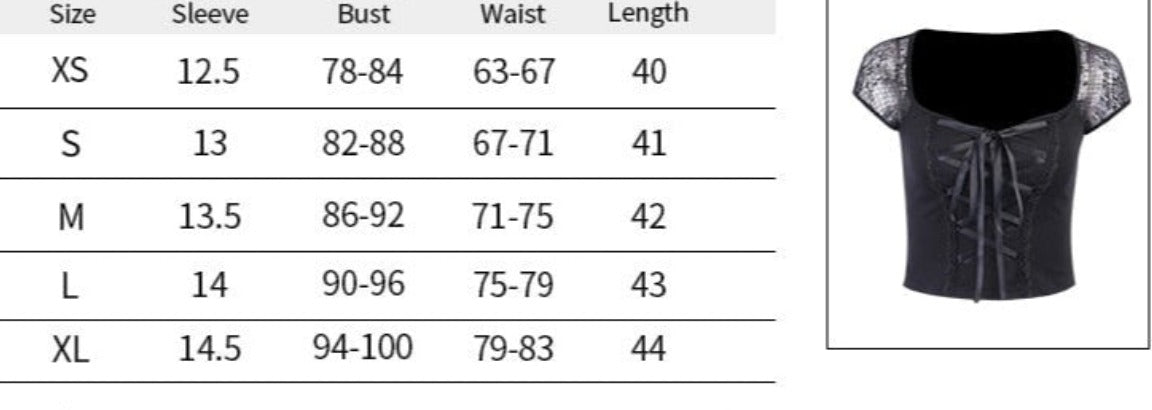 Gorgeous, subtly-sexy Goth style black lace up top, with a touch of corset theme.