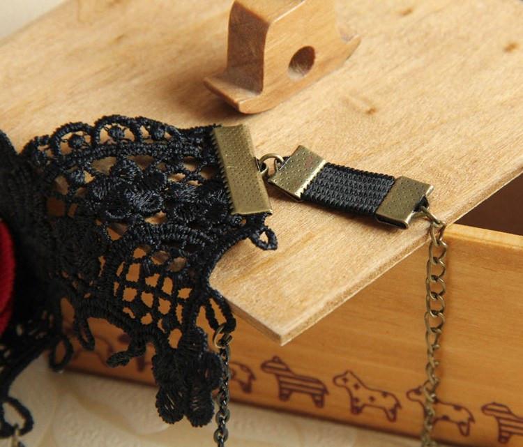 It is crafted from high quality knitted lace. The metal chain is made from high quality alloy with gold plating and set with a rhinestone crystal.