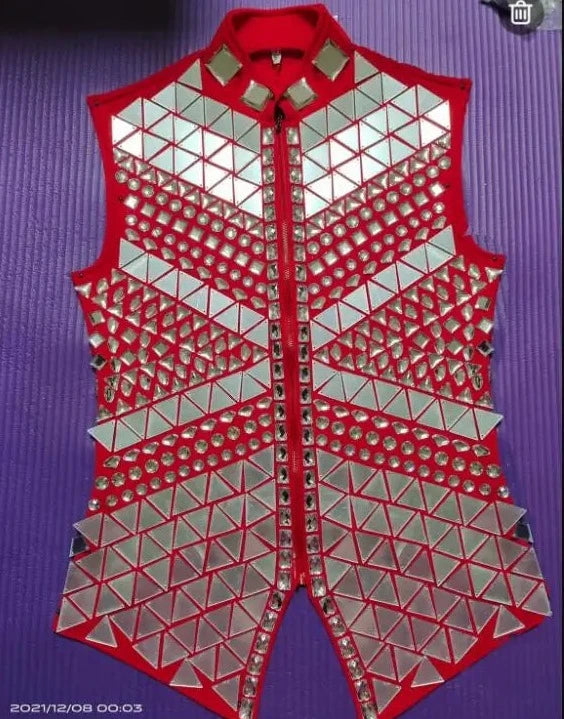 Available in two striking options—red with silver mirrored sequins or black with silver mirrored sequins—this vest lets you express your unique style. Be sure to check measurements carefully to ensure the perfect fit.