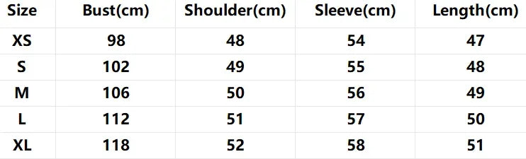 Size UK Size Shoulder Width Bust Size Length Sleeve Length