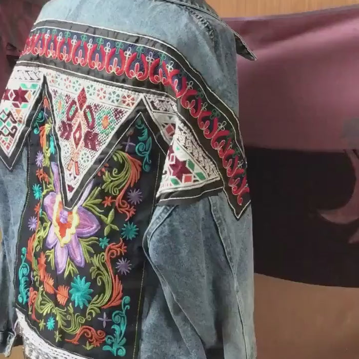 Casual is a word frequently used for denim jackets and we have one of the best presented "casual" jackets with this gorgeously embroidered number. For added glitz, check out the silver coloured oversized sequins at the bottom of the back panel.